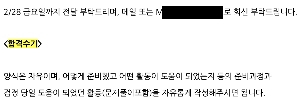 합격 통보 메일 1시간 뒤, 합격 수기를 작성해달라는 메일을 받았다.