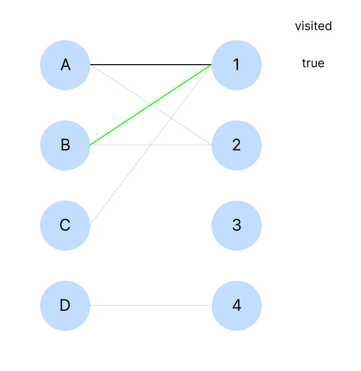 A가 매칭에 성공하여 B는 이제 1과 연결할 수 있으니 연결한다.