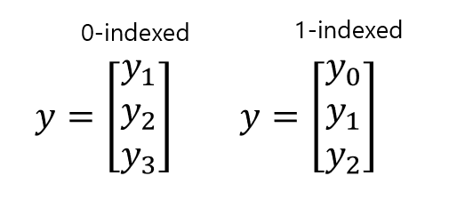 1,1부터 시작하는 경우는 1-indexed라고 부르며, 보통 수학에서 많이 표현됩니다. 0,0으로 시작하는 0-indexed는 프로그래밍 할 때 많이 표현되며 프로그래밍 할 때 자주 표현합니다.