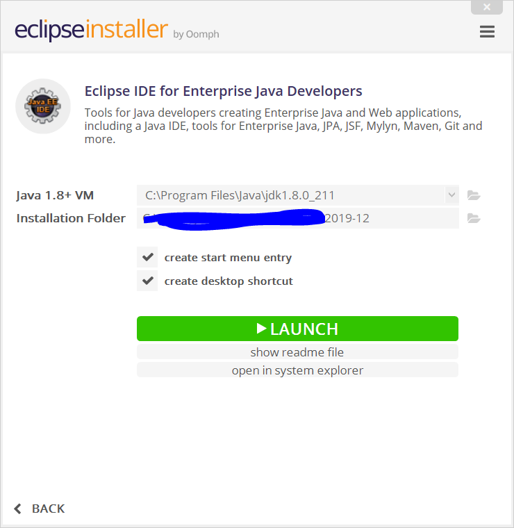 뭐 건들지 마시고 INSTALL 눌러주세요. 자바 버전을 고르고 싶으시면 Java 1.8+ VM 옆 폴더를 열어 선태해 주세요.
