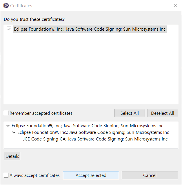 반드시 Accept License Agreement란을 체크해주세요.