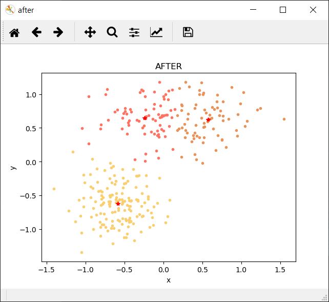 이전 S와 그 다음 S가 동일하게 될 때까지 군집화 진행.